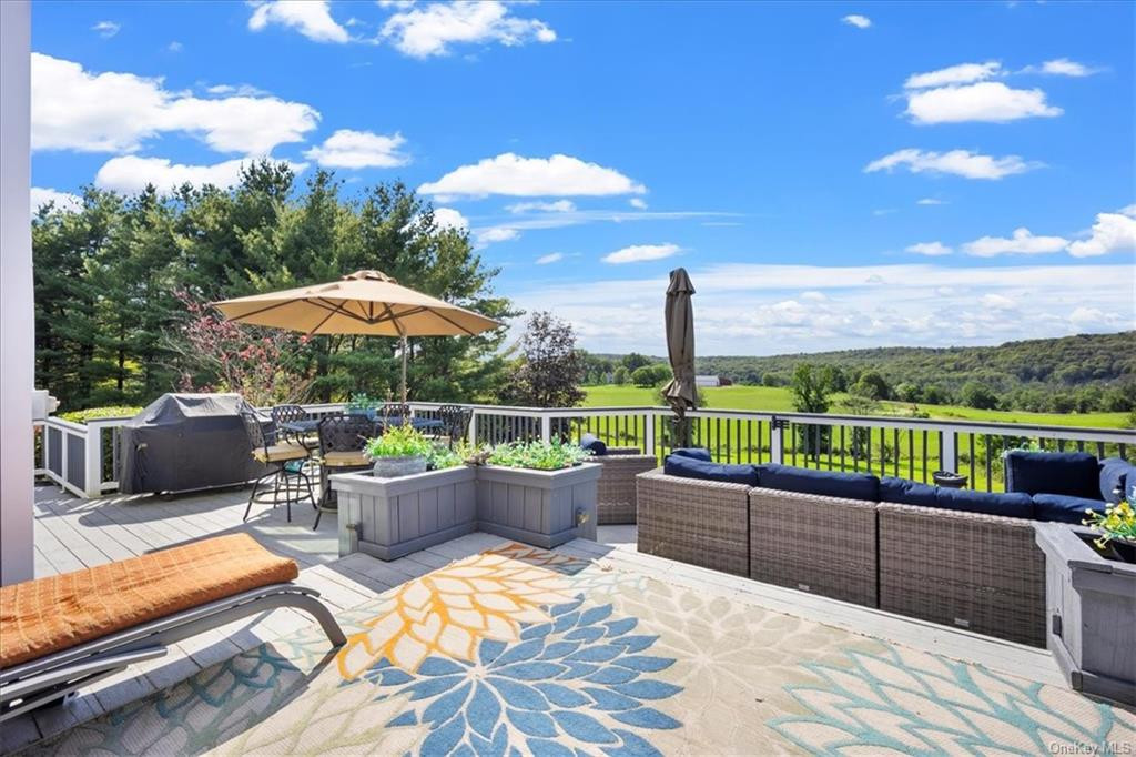Percched on a picturesque hilltop in Lagrangevile, this four-bedroom, three-bathroom Colonial features hardwood floors and abundant natural light. The chef's kitchen boats high-end appliances. The primary suite has a recently updated bathroom with radiant heat and a walk-in shower. An expansive deck provides a vantage point to enjoy the view and sunset over the mountain. Listed at $749,900 by HomeSmart Premier Living Realty.