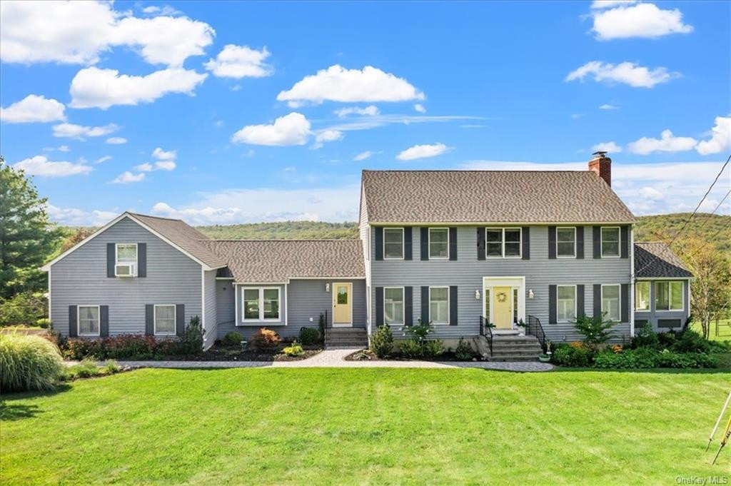 A stately Colonial home in Lagrangeville offers unparalleled views of farmland and mountain ranges.