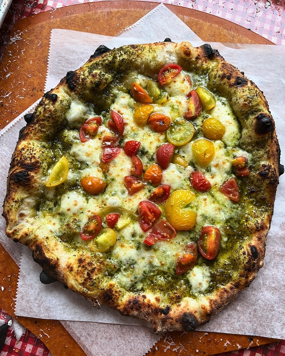 Small plates like arancini, meatballs, and seasonal salads accompany the pies, along with espresso, amaro, and simple desserts. “The menu’s intentionally narrow,” he says. “Pizza deserves to stand on its own.”