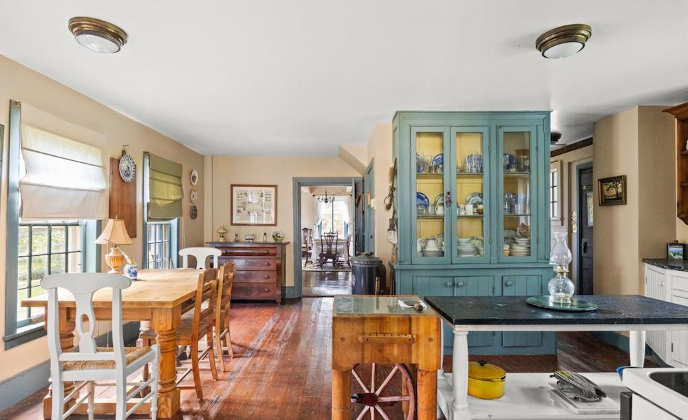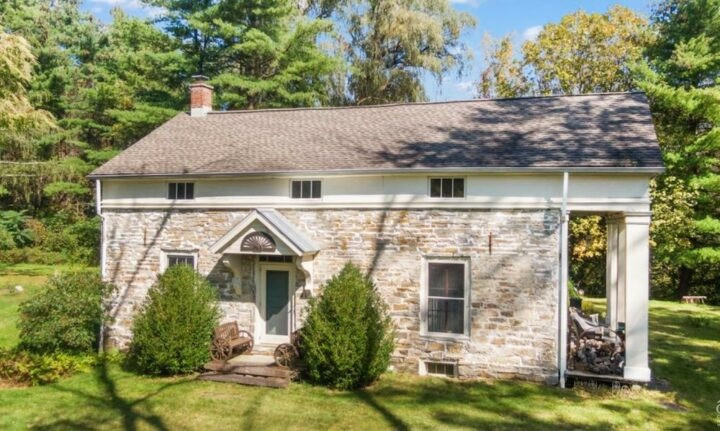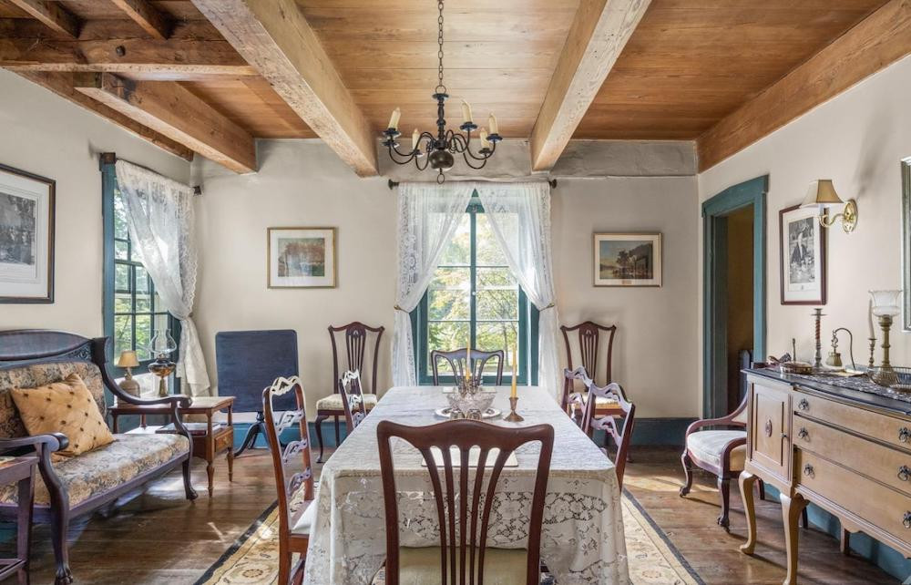 Surrounded by the Hudson River Estuarine Research Reserve in Stuyvesant, this 18th-century Dutch Colonial stone house was built in 1762. It offers three bedrooms and three bathrooms, exposed beams, period hardware and moldings, and wide-board floors throughout. The Nuttenkill, a tidal stream, runs along the rear of the property. Listed at $775,000 by Country Life Real Estate.