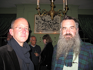 All day Saturday, David Hart, President of the Greenport Historical Society, stood outside, seemingly oblivious to the damp and cold, greeting visitors to the 1799 Toll House that he and his group are hoping to restore. Anyone who drives on 23B has passed it—a mysterious, boarded-up, old stone structure, sited close to the road. Until 1907, it was as shown here (left), the home and office to a toll collector—two cents for a horse and rider, a little more for a one-axel rig, and so on. The funds were used to maintain and eventually to pave the dirt road so farmers could get their eggs, milk, and produce more efficiently to the hundreds of ships that passed through Hudson habour daily. A day rife with history lessons and tours of beautiful buildings to benefit Historic Hudson ended at Norman Posner's Hudson Bush Farm, a Georgian house that is considered one of the finest in the Hudson Valley, with a cocktail reception conducted entirely by candlelight. It felt like 1799.