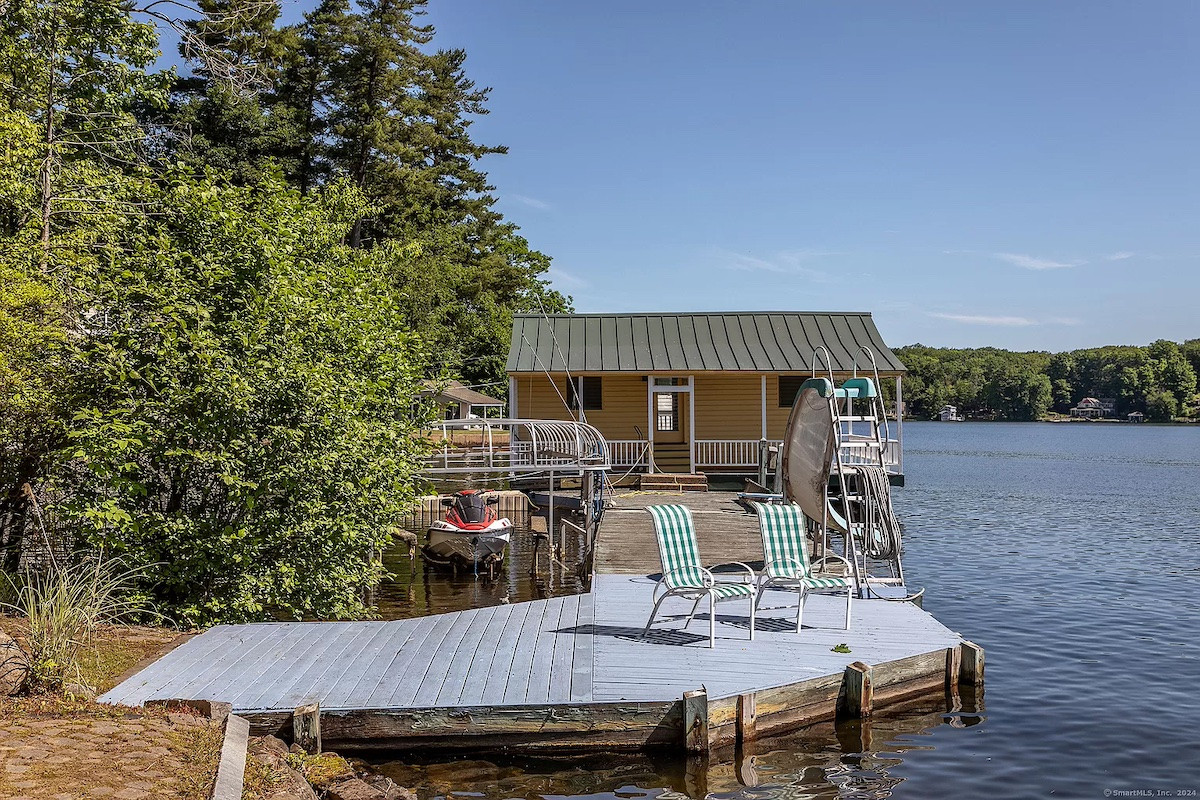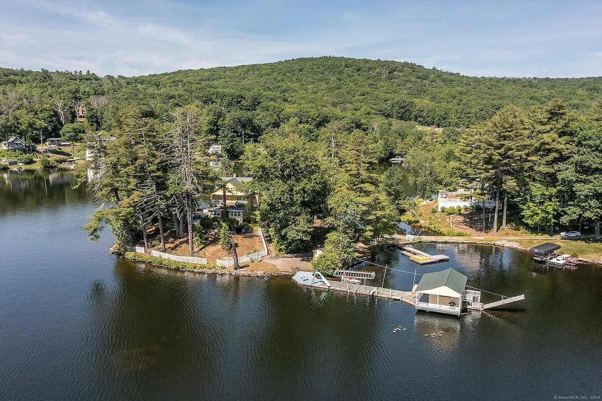 The waters of Highland Lake in Winchester surround the island with this home that dates back to 1890. There have been significant alterations made and the seven bedroom, four-bathroom property now includes a boat house, barn, and porch. There are docks and piers, and the longest view of the lake. Listed at $1,650,000 by William Pitt Julia B Fee Sotheby's International Property.
