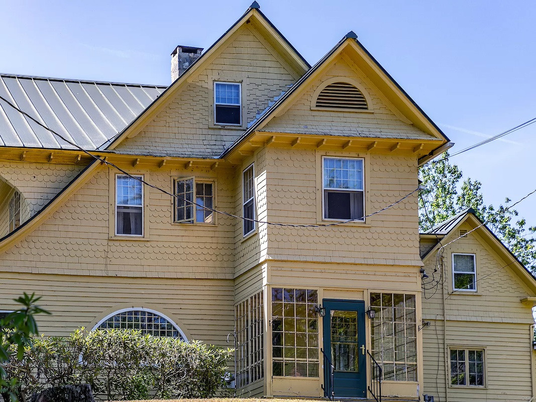 The 1890 home sits on Strong Island, a waterfront retreat on Highland Lake in Winchester.