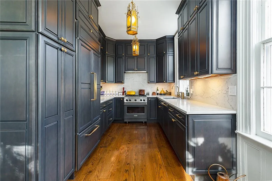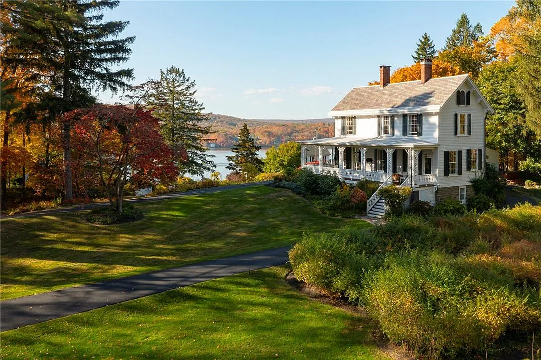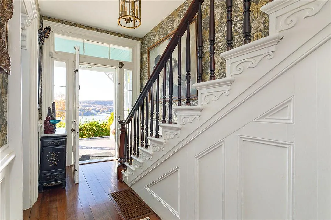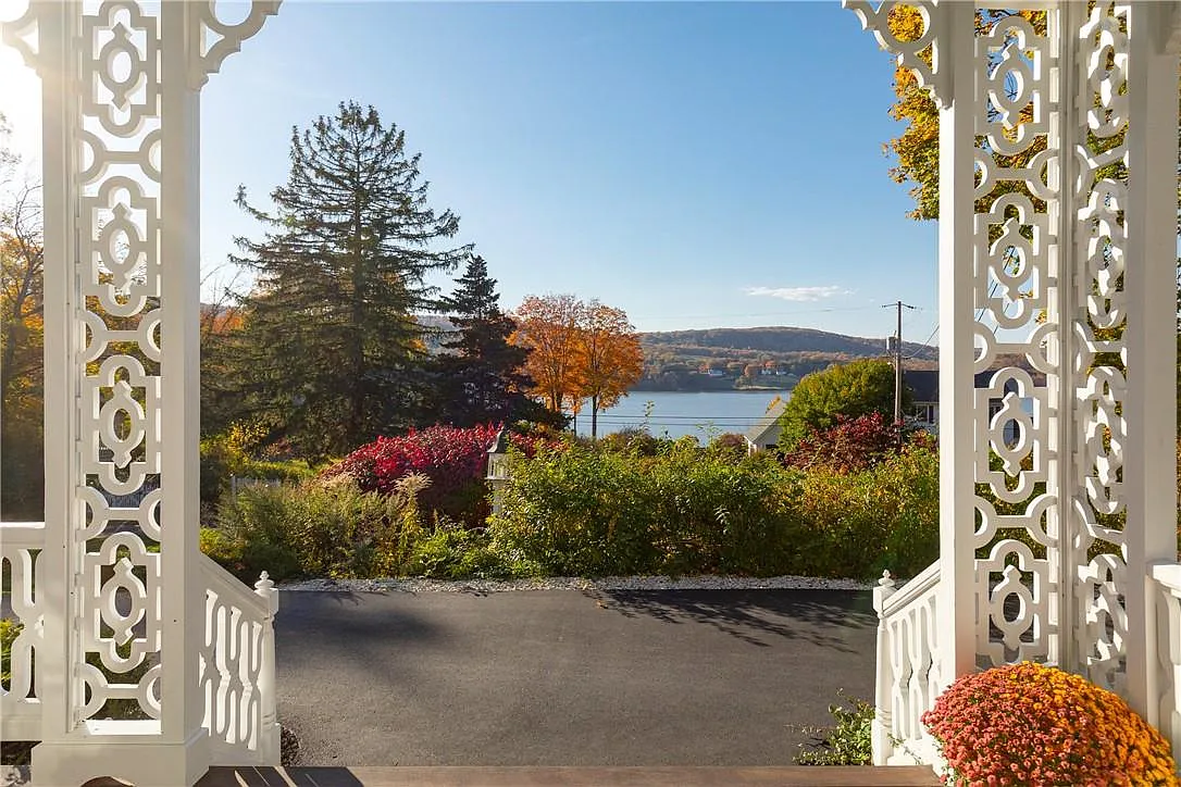 This is truly gilded-age Hudson River living, one of those historic homes that sets the standard for this type of riverside estate. Set on 4.37 acres with a view of the Hudson from your front door, 21 Curry Lane in Hyde Park offers a mix of historic architecture and updated amenities. Built in 1879, the Victorian-style home retains many of its original features—marble fireplaces, plaster crown molding, and a slate roof—with modern touches like a renovated kitchen with high-end appliances and a Viking gas stove. It's got three bedrooms, two bathrooms, and lots of room for luxe entertaining at 2,100 square feet.