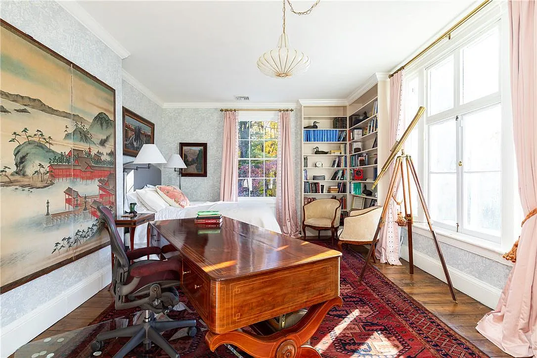 This home has clearly been taken care of for its lifetime; it's got plenty of lovely modern updates along with restored charm, like floor-to-ceiling windows in the main living and dining areas, original French doors, and built-in storage. Two large bedrooms upstairs are joined by a smaller third room that could function as a dressing room or be incorporated into an expanded bath. Recent upgrades include a 20-by-50-foot heated gunite pool, a pool house, and a pergola. You also get a conservatory and a wraparound porch, along with a pool.