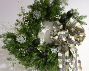 Participating artist Ann Dobrowolski with Dave and Sheli Turocy; wreath artists Karen Labanaro and Becky Armstrong.