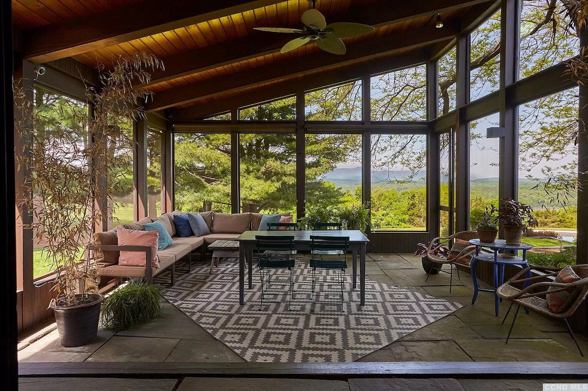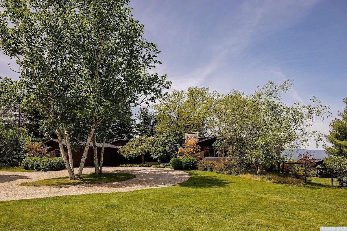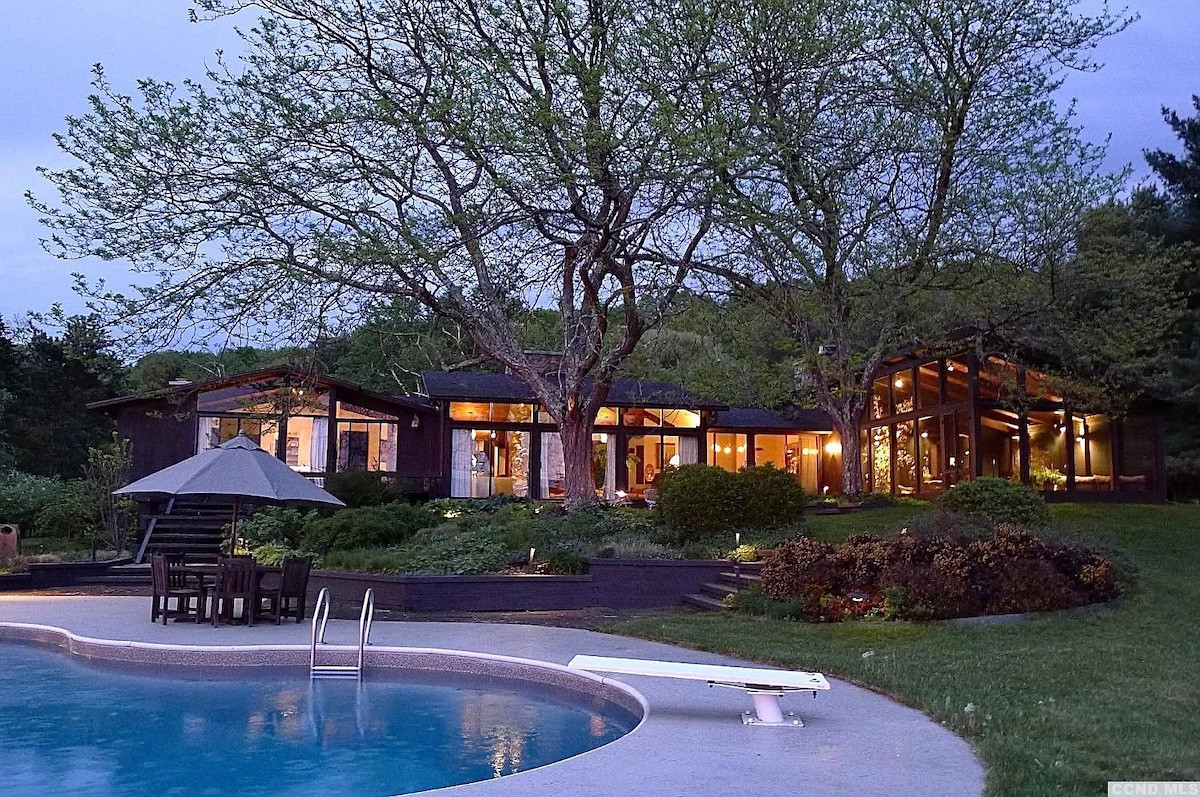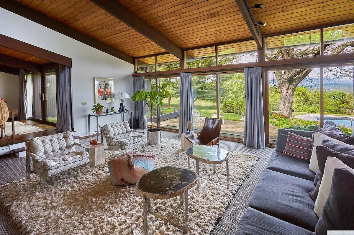 A midcentury modern residence in Hudson overlooks the Hudson River.