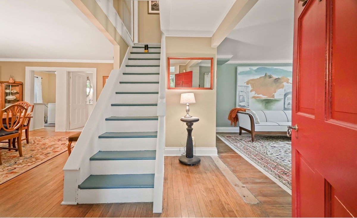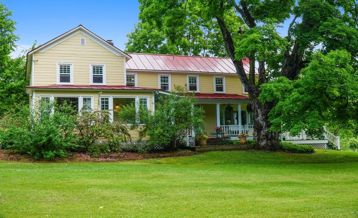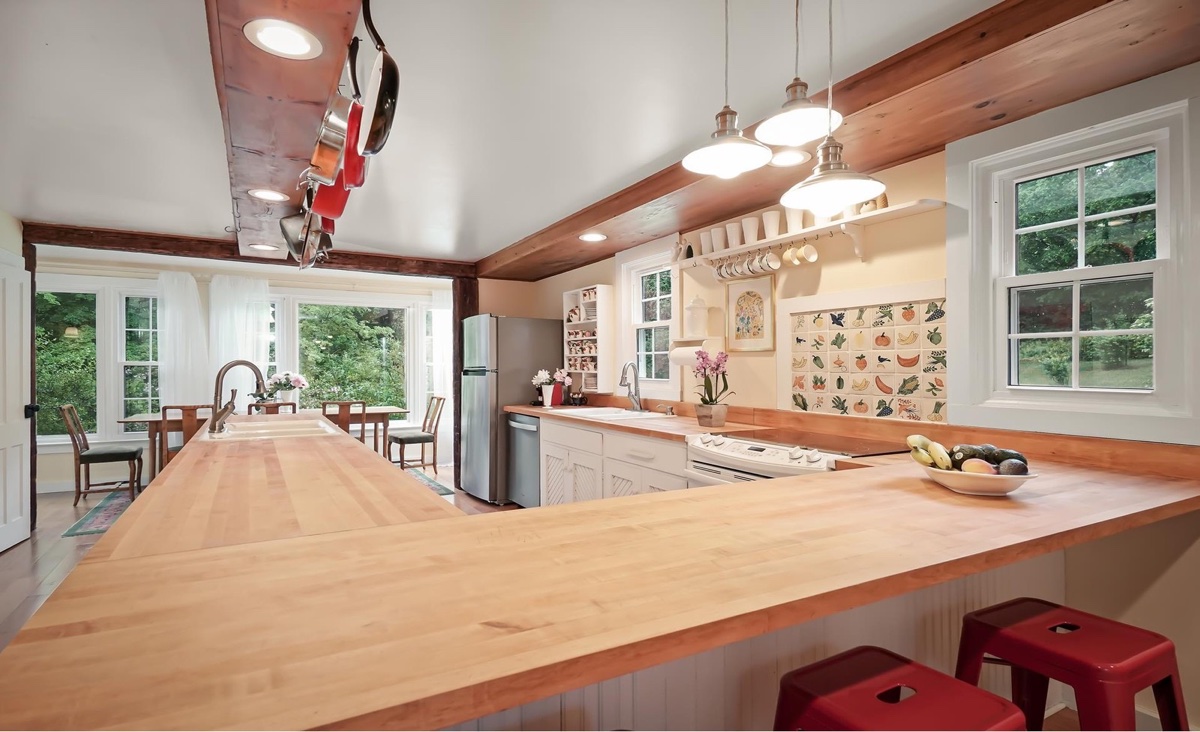 This 1910 home in Hudson with 3 bedrooms and 2 bathrooms sits on 64.2 acres and is located just half an hour away from the Rhinecliff Amtrak station. Neighboring with the Rockefeller estate, it offers a working agricultural farm, horse property with 2 barns and 4 stalls, blueberries, raspberries, sugar maples, crab apple, hazelnut, and willow trees surrounding the pond. There is a natural spring pond with a private dock. Listed at $1,395,000 by Douglas Elliman.