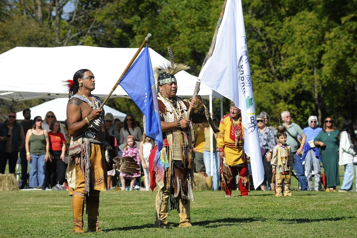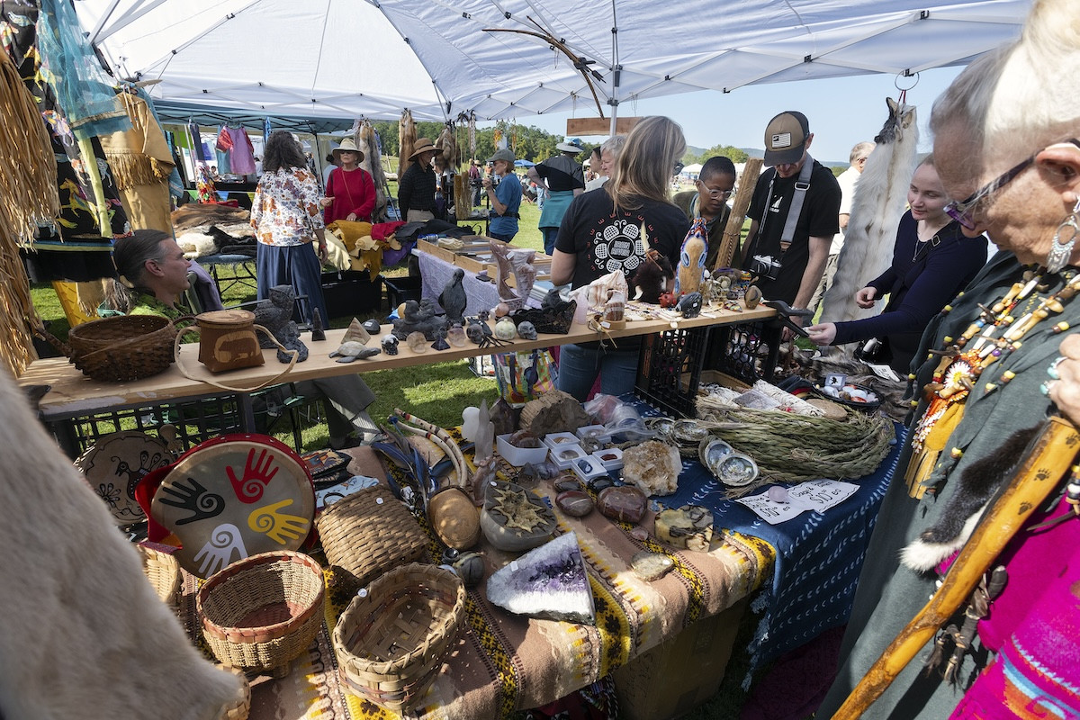 The event brought together tribal members who had traveled from the Stockbridge-Munsee's reservation in Wisconsin and beyond, along with other indigenous people, and neighbors from across the region eager to learn and participate. Around the outside of the ceremonial dance circle, artisans sold cultural craftwork and indigenous food.