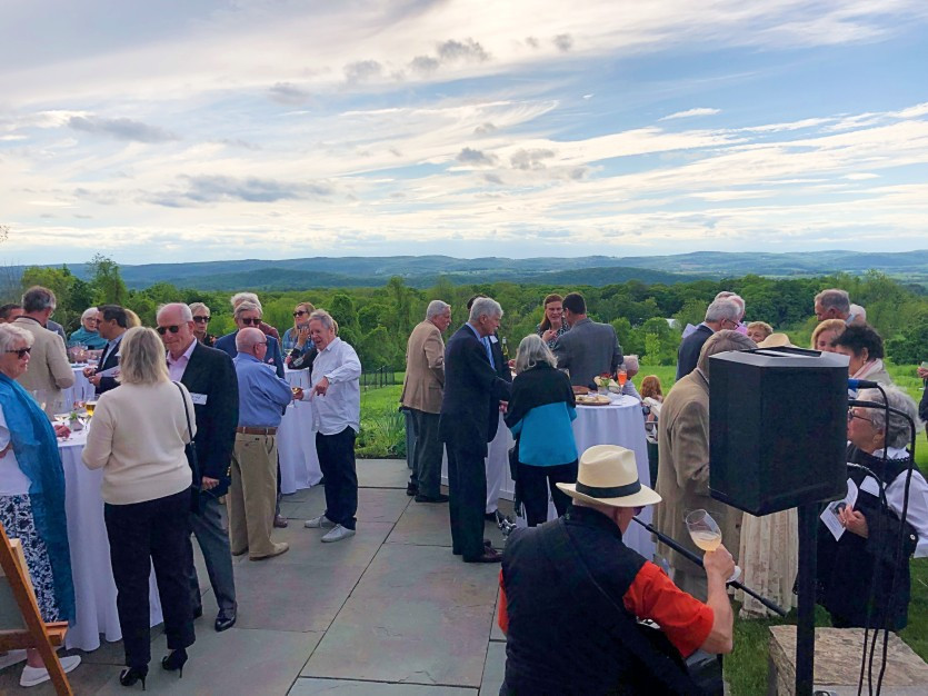 On Saturday, May 18, Linda and James Quella shared the spectacular view from their hilltop home in Sharon, Connecticut, the site of the Hotchkiss Library of Sharon’s annual summer gala. The newly expanded library on the Sharon Green has plans to expand its children’s programming as well as offer events such as chess, family movie nights, a silent film fest and other children’s and adult programs. To that end, a large group of supporters at the gala participated in both silent and live auction items. The unequivocal hit of the night: a spontaneous offer from James Quella to host a dinner for 12 at his home. When the bidding reached $13,000, he offered a second dinner, resulting in two winners. Still, it was never lost that the proceeds would go to the library, the literary and culture center of Sharon. “The library is about community, Quella said. “It’s a place where people can gather and learn. We want everyone to feel welcome.”