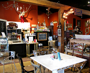 Their original stash, which they’d been collecting for years, had to be moved out of their circa 1776 home during renovations. That’s how it ended up in Deyber’s painting studio (which Graham managed), later transitioning to their first retail operation, The White Room Art & Antiques. They soon outgrew the space, and two years ago moved operations to the stately brick building on Bantam Road. The inventory ranges from consigned goods to antiquities, jewelry, furniture, art and sculpture. Gifty items, like candles, bath and body products and home fragrances, get special positioning on the center table at the front of the store. Eclectic is an adjective that seems overused these days, but it really fits here; you might be looking at a primitive painting sitting on an industrial end table. Or a sideboard with a distressed finish might be topped by a limited edition print. Kitschy tin signs bump up next to leather chairs. Chandeliers and banners hang from the ceiling. Price points range from a couple of dollars to five figures. It’s hard to know what’s vintage or modern or a true antique. And that’s what makes shopping there so fun.