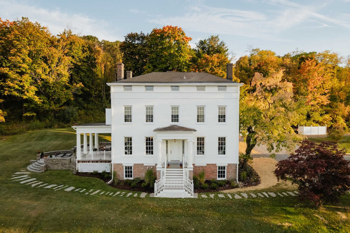 On the slope of Mt Merino, just outside Hudson, is a masterpiece of Greek revival architecture built in 1836, by Oliver Wiswall. This stately brick home commands legendary views of the Hudson River. Approaching the property via a tree-lined drive the moldings and columns of the three-story facade sets the tone for the interior’s blend of historical charm and modern luxury. The main level boasts tall ceilings, intricately restored moldings, and spacious living areas. Twin sitting rooms, each with its own fireplace, lead to a formal dining room. A well conceived 1980s edition contains a vaulted-ceiling kitchen and casual dining space.