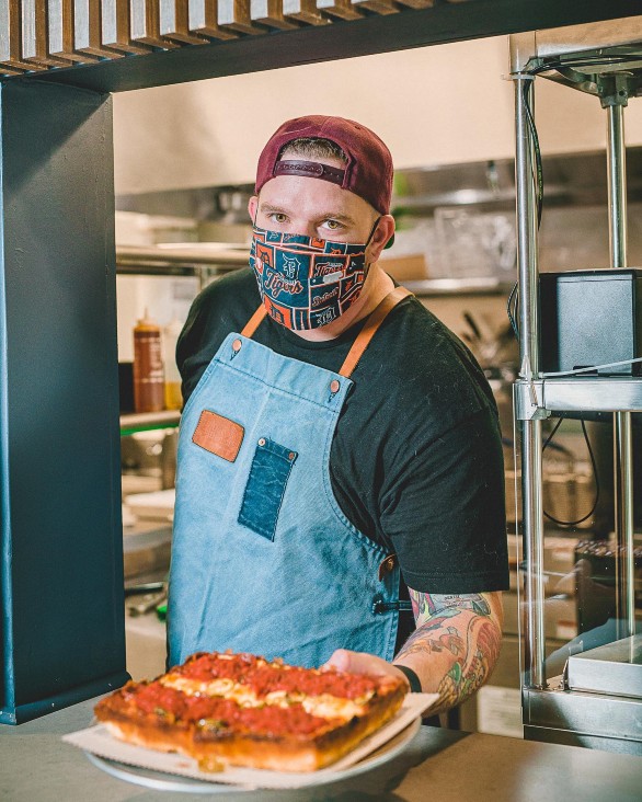 Webb isn’t a fan of slice shops, but he is waiting on pans that will let him roll out a smaller size pizza for the lunch menu. “It offers a cheaper price point but also a size for people that come in looking for a slice,” he says. “And it can still be made fresh to order, it’s never sitting around.” As for how to dig into your Detroit pizza, whatever size it may be, Webb offers a tip: “If you’re me, you’re taking a bite out the crust and the pizza at the same time. You’re not going to fold this. Pick it up and go at it.”
