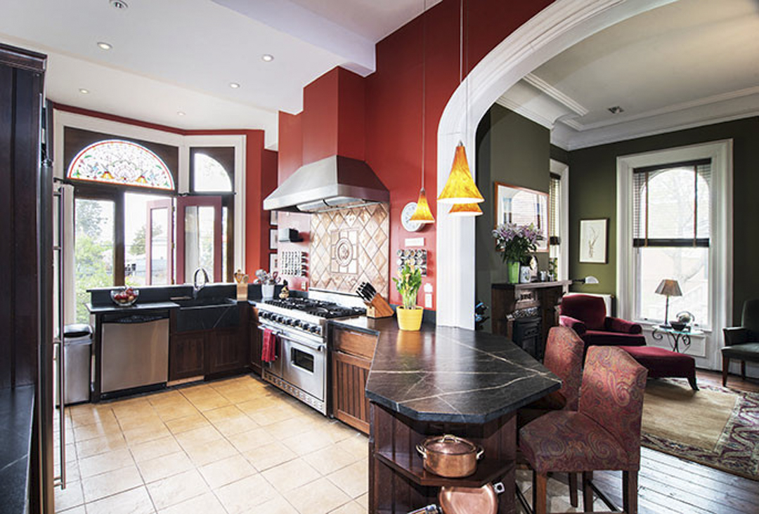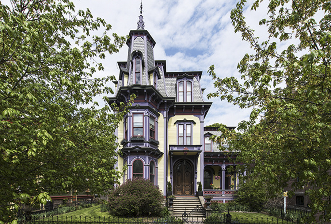 Designed in 1874 by G.B. Croff, this house in Hudson was renovated in 2005. It retains its historic charm while incorporating modern amenities. Boasting a mostly open first-floor plan, the house features a gourmet kitchen, spacious formal dining room, multiple living rooms, gas fireplaces, heated floors and outdoor spaces. There are five bedrooms and seven bathrooms. Located in the finished basement are a gym, wine cellar, laundry room and ample storage. The home also features high ceilings and a sweeping staircase when you walk in the door. Listed for $1,375,000 by Gary Dimauro Real Estate Inc.