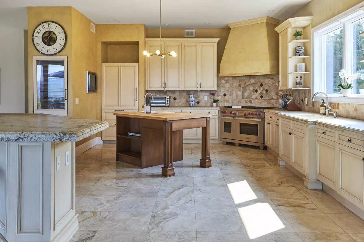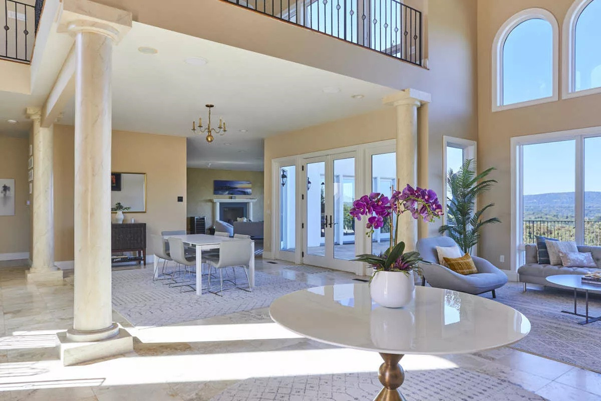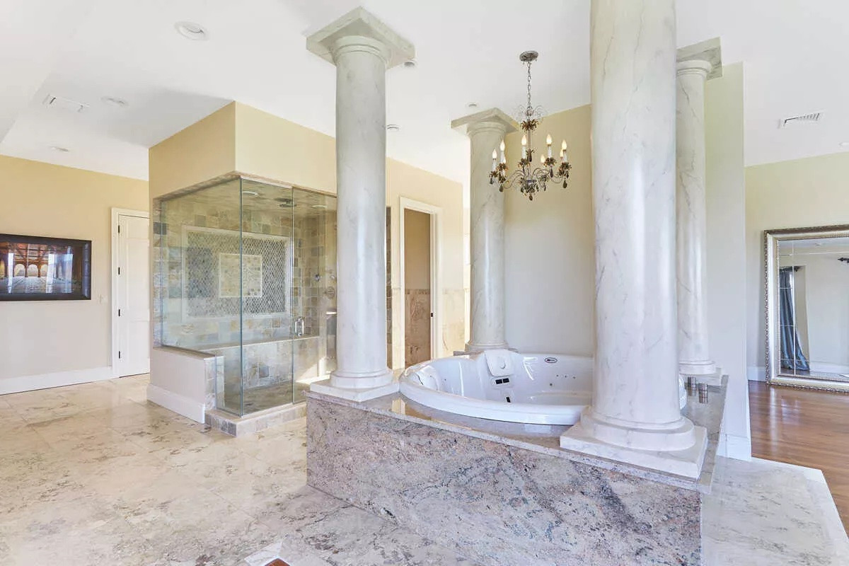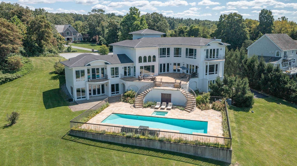 Realtor calls this well-equipped villa a Hudson Valley paradise. It offers three bedrooms and six bathrooms in 8,000 square feet. The 40-plus foot-long inground heated pool and hot tub are accessible from the patio staircase and walkout basement, which houses a bonus fifth bedroom and space for a home gym, office or family room. Extras include geothermal, air filtration and water filtration systems. Furnishing are available for sale. Listed at $1,950,000 by Rouse + Co. Real Estate.