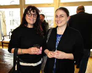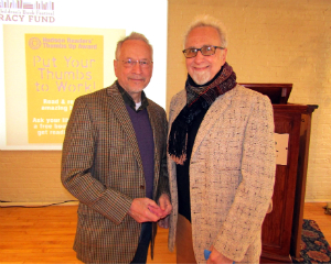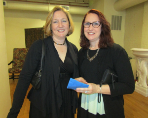 Amy Krzanik reports from Hudson. A great cause deserves a great turnout, so it’s always a pleasure to see a large crowd of supporters congregate at the annual cocktail party fundraiser for the Hudson Children’s Book Festival Literacy Fund. Held at Stair Galleries on Warren Street for the past three years, the party is a way to assure that each Hudson City School District student is able to attend and to purchase a book of his or her choice at the summertime Festival. As the Fund’s co-founders, Chris Jones and Susan Simon, reminded the audience at the April 1 event, 73 percent of Hudson’s children live in poverty. The Fund, which became a certified 501(c)3 this year, has so far given away more than 2,000 books in its quest to instill the love of reading in area students. Along with last year’s creation of the Thumb’s Up book review program, the project has added a Young Writers Program, and the crowd was treated to readings by two of its participants — high school students Karrie-Ann Silvernail and Ingrid Kildiss. In addition to these ventures, the Fund works to bring a diverse array of authors to speak in classrooms, add new books to and replace much-loved classics in the city’s school libraries, and more. This year’s Festival is set for Saturday, May 6. [Above, Book Fest director Jen Clark with Melissa Brown, a board member and Hudson city school teacher.]