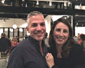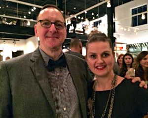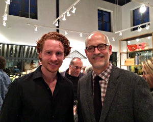 Marilyn Bethany reports from Hudson. To celebrate the completion of larger, even more glamorous quarters, Richard Bodin and Gregory Feller, the owners of Hudson Home, invited friends, customers and design clients to take a peek and raise a glass on Sunday evening, Oct. 11, at their new showroom at 366 Warren Street, on the northwest corner of 4th. “When we first saw this space, it was a poorly lit, unheated, concrete shell," recalls Bodin of the former printing plant. Now the ground floor is a light-filled retail showroom with a soaring 24-foot ceiling that features the team’s savvy selection of furniture, lighting, accessories and art. Up a flight of stairs on the mezzanine, there’s an extensive to-the-trade design library, as well as spaces for interior designers to work. “As designers ourselves, we have great empathy for the challenges professionals face," says Feller. “We’re here to make their lives easier, too." Above, co-owner Gregory Feller with the new location's premier featured artist Liam Dean.