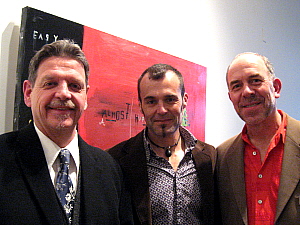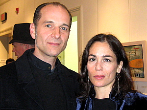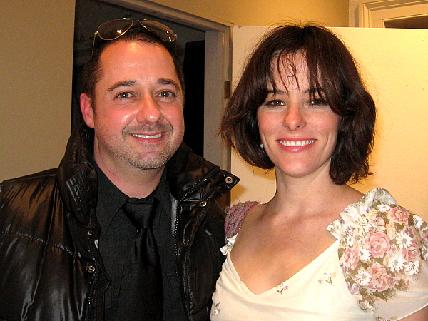 Former Jeffrey, NY visual director turned former Hudson gallery owner and now a painter John Findysz, a dinner host, with a guest, the actor Parker Posey