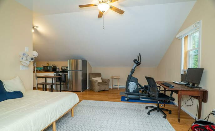 The main home of this Hyde Park residence offers two entry doors, one with an attached private sunroom. There are three bedrooms and four bathrooms. The detached two-car garage contains the updated in-law apartment above. Outside there are dozens of trees and a wraparound deck. Listed at $510,000 by Muccio Real Estate.
