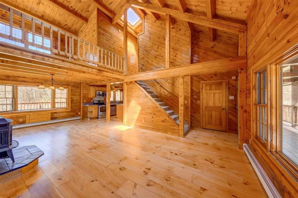 This well-maintained, two bedroom, two-and-a-half-bath log home in Hyde Park is situated on 13 acres with a pond. It's recently been updated with granite kitchen counters, new bathroom fixtures and vanity tops, a newer furnace and other updates. There is a fabulous covered deck, and realtor says basement is a perfect setup for an in-law living area. The property also has two outbuildings in excellent condition. Listed at $549,000 by Serino Realty.