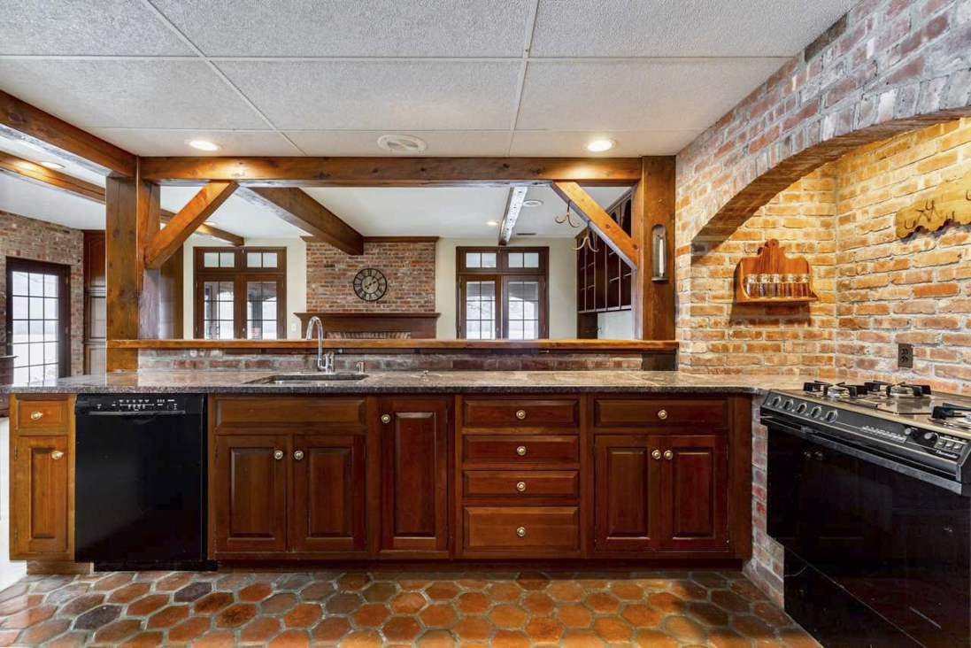 In Hyde Park, this home overlooks the Hudson River and has just under an acre of land. Features include exposed beams, chevron brick flooring, built-in cabinets, archways and a wood-mantle fireplace. There are three bedrooms and two-and-a half bathrooms. On the property there is also an apartment for mixed use. This home is located only half a mile away from Rogers Point Boating Association and four minutes from the Culinary Institute of America. Listed for $979,000 by Paula Redmond Real Estate.