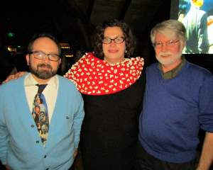 Images former director Daniel Wallace, Erica Schmitz and "Disgust" – characters from the film Inside Out; the cinema's current executive director, Doug Jones, with former director Sandra Thomas (and her popcorn shawl), and board president Sam Crane.