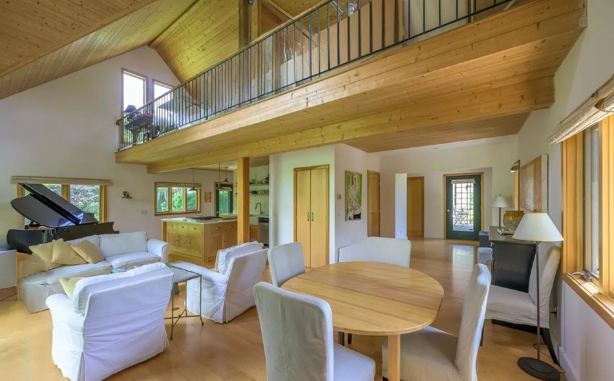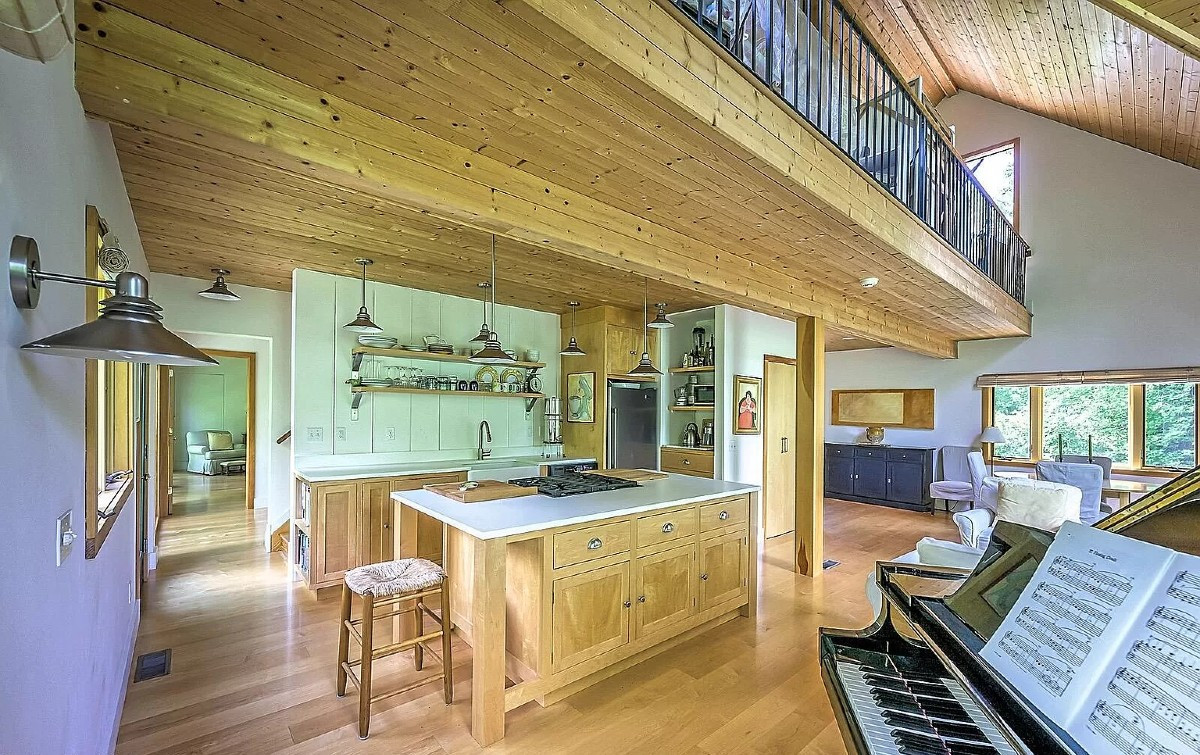 This three-bedroom, three-bathroom condo in Great Barrington offer 2,190 square feet with an open floor plan and a loft area upstairs. One of the bedrooms serves as both office and sleeping accommodation with a sliding barn door opening to a marble terrace overlooking the river. There is a two-car garage. Listed at $1,575,000 by Berkshire Property Agents.