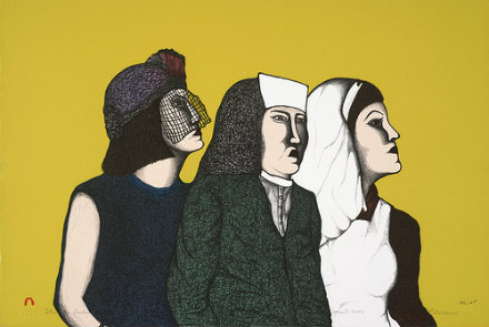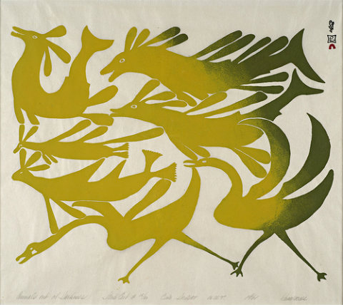 In recent years, the “official" history of indigenous North Americans – as told from European perspectives – has fallen under increased scrutiny. Potent critiques of the “textbook take" are increasingly common, and slowly but surely, the narrative is changing; the term “Native American" has displaced “Indian," Christopher Columbus is losing credibility, the 1990 NAGPRA Act provides Federal protection of tribal property and historic sites, and contemporary indigenous art is gaining respect. Vassar’s own indefatigable Professor Molly McGlennen, a member of the Anishinaabe tribe, is part of this shift. McGlennen, with degrees in English and Philosophy, and a PhD in Native American Studies, is deeply committed to broadening students’ perspectives via her class, "Decolonizing the Exhibition: Critical Approaches to Contemporary Indigenous Art." In a unique move, the class culminates in an exhibit curated by those students: Decolonizing the Exhibition: Contemporary Inuit Prints and Drawings From the Edward J. Guarino Collection. The exhibit features eight Inuit works on paper, displayed in the Focus Gallery at the Frances Lehman Loeb Art Center from December 4th to February 2nd.