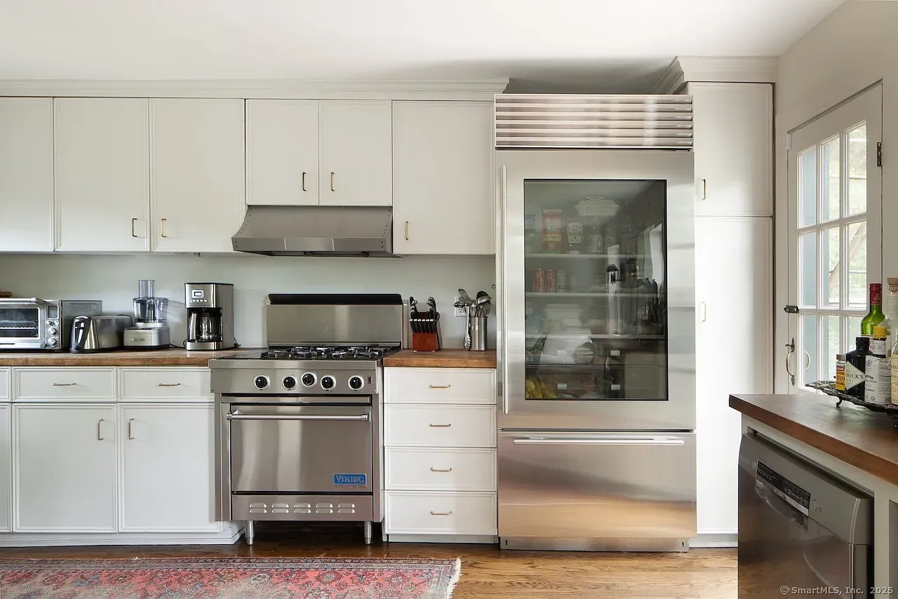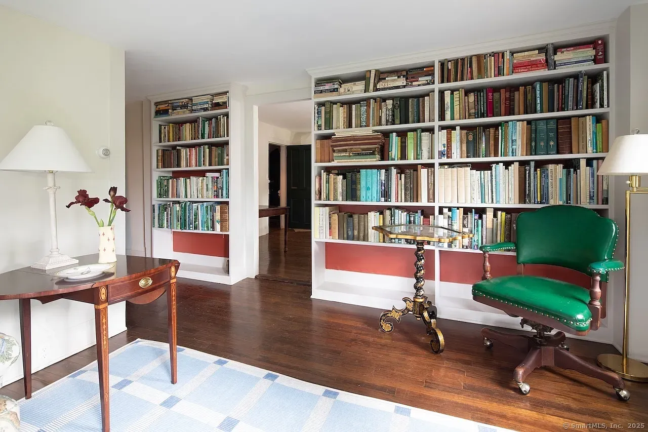 Inside, the house runs to about 18,000 square feet, compact. The kitchen has a wood-burning fireplace and high-end appliances. The living room opens directly to the garden. A first-floor library doubles easily as a bedroom, adjacent to a full bath; two more bedrooms and an oversized bath sit upstairs, with a walk-up attic above. The stucco exterior and the proportions of the place really do give off an old Irish feel.