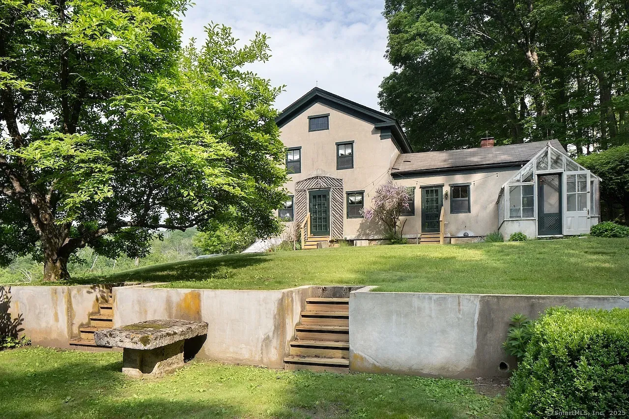 On a secluded two-acre lot just above the Great Falls in Falls Village, 163 Dublin Road is an Irish-inspired 1920s farmhouse once, according to the listing, renovated by a nationally recognized decorating editor and landscaped by an acclaimed garden designer, though their names were undisclosed.