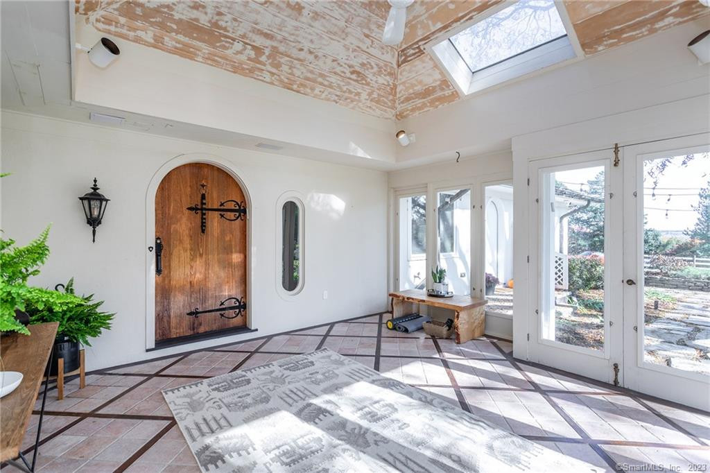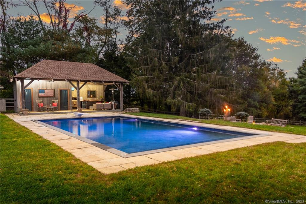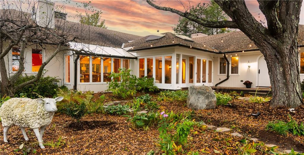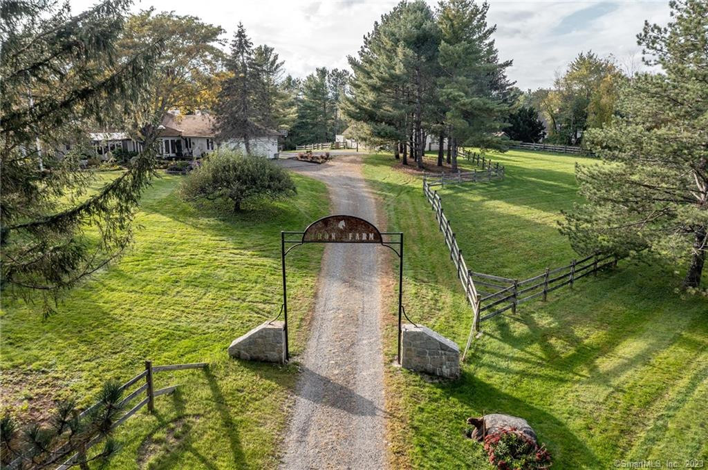 Sited on over three acres of land in Morris, Iron Horse Farm welcomes through a sunroom and into an open concept living space. It has a chef's kitchen, six bedrooms, five bathrooms, and a media room. Outside there is a deck, hot tub, pool, fire pit and impressive lawn. The grounds also have a four-stall horse barn with an attached two-car garage, and a basketball court. Listed at $1,299,000 by Regency Real Estate.