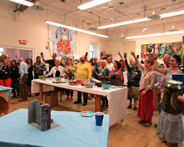 Amy Krzanik reports from Stockbridge. If you’ve ever taken a class at IS183 Art School of the Berkshires, visited its home base at Citizens’ Hall in Stockbridge, Mass. or attended one of the non-profit’s over-the-top (in the very best way) galas, you’ve met Hope Sullivan. The organization’s longtime director was most likely there to greet you with a smile and make you feel welcome. But Sullivan is now moving on, ready to begin a new job as the executive director at the Spruce Peak Performing Arts Center Foundation in Stowe, VT. Friends, colleagues, IS183 instructors and board members, and others in the community gathered at Citizens’ Hall on Sunday, Aug. 6 to send her off and wish her well on her next artistic adventure. Nancy Kalodner, an IS183 founding board member, read a statement expressing the gratitude many feel toward Sullivan, who has been at the helm of the 25-year-old organization for the last 12 years, and has expanded its programming and led the non-profit out of debt. Sullivan herself thanked the school’s board members and other supporters for their dedication and generosity throughout the years. Good luck, Hope, and we’ll miss you.