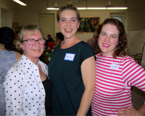 Program director Lucie Castaldo, who will serve as interim executive director, with Hope Sullivan; board chairman Andy Foster with ceramics student Nadine Atalla of Cafe Lucia and board member Aine Ungar.