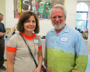 Ceramics studio manager Jared Gelormino with Leslie Ferrin; artist Keith Emerling with potter and teacher Margie Skaggs and ceramicist Marcie Kammel.