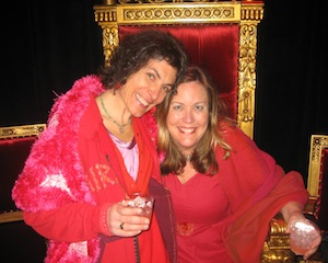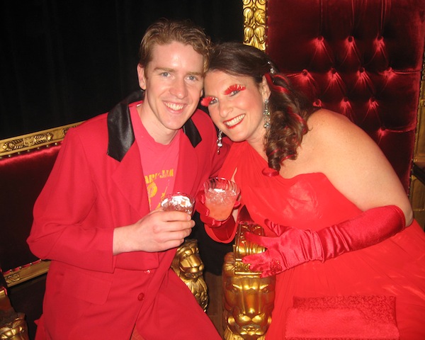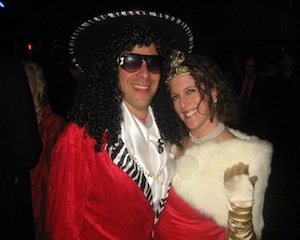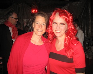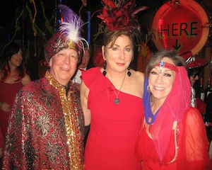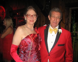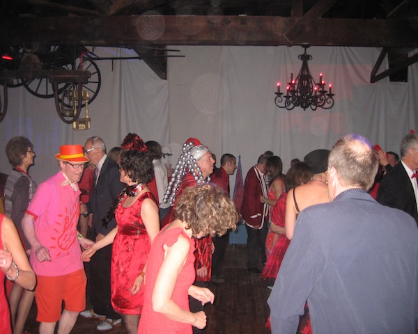 Rachel Louchen reports from Lenox. Many parties request that guests dress to impress, but for the attendees who come out every year for the annual IS183 costume gala, impressionable and outrageous are often one and the same. It's the only party where you can find a Teletubby dancing with someone wearing a giant papier mâché head. A sizable portion of the county turned out to support the Berkshires’ nonprofit community art school on Saturday, April 12. This year's theme, The Vermilion Cotillion, bade attendees to dress in red, so guests showed up at the Eastover Resort wearing crimson suits, big ball gowns and elaborate masks and wigs. Festivities actually began at dinners hosted at private homes, farms or businesses. Then all headed to the party portion of the evening, where they entered a room filled with goods for the silent auction before heading onto the dance floor -- an art installation in itself, with projections of funky images that put guests in the mood to groove (not that they needed much coaxing). Drinks were poured, sweets from Chocolate Springs beckoned and attendees took pictures posing on the throne, a fitting perch for so many in regal attire. This was not an early night, as most guests danced far into the evening, many of them already excited for next year's celebration. Above, IS183 club member John Zutter, Brigitte Hughes and club member K.K. Zutter are studies in vermilion.