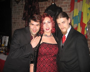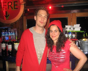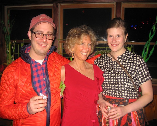 RI'sJake Levin and Silka Glanzman, a.k.a. The Butcher and The Baker, flank Susan Engel; Volunteer bartenders John Wendling and artist Maggie Mailer called the shots.