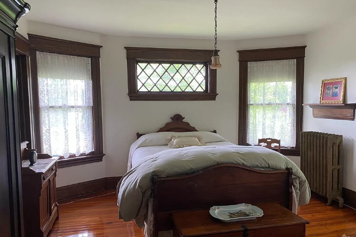 This circa 1911 ivy-covered stone and stucco Victorian home in Pine Plains was built by Irving Huested Pulver, a local cattle dealer. It has three berooms and two bathrooms, and many of the original features and detailing are intact. The stone fireplace in the living room has a gas log insert, and a large walk-up attic is ready to be finsihed into a third-floor living space. There's a two-story barn with a workshop, a fenced garden, and woodshed. Listed at $995,000 by Dutchess Country Realty.