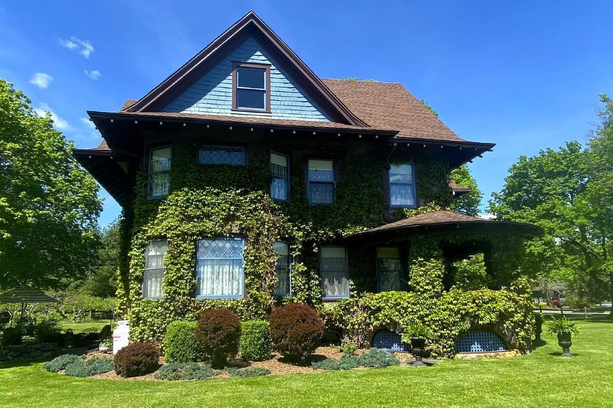 The home, called "Alwynds," is an ivy-covered stone and stucco Victorian in Pine Plains.