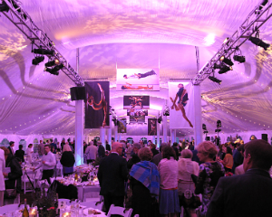 Before the performance, guests were treated to hors d'oeuvres as tasty as they were creative; the purple-hued scene inside the tent where dinner was served.