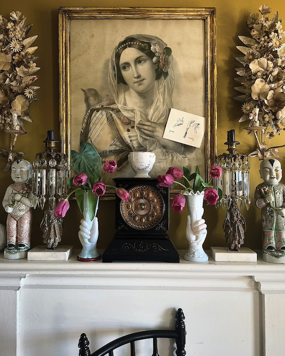 That was over 20 years ago, and now, Coviello’s house is almost famous — featured in design magazines and from various vantage points on Coviello’s Instagram account, which has nearly 90,000 followers. The account also tracks Coviello’s interior design eye as he visits historic houses and museums and hunts for great objects around the Hudson Valley and beyond. In one post, a vase from Bangkok is pictured on a mantel next to a complementary one he found in a local shop. His collection of American Empire mirrors in the hallway upstairs and the antique washstand in the bathroom were just reproduced in an Italian magazine. I ask Coviello what it is that makes his country home so appealing to others. “It’s livable in a way that’s unusual for people who collect antiques. I think it represents a casual way of living with antiques, rather than just making them precious,” he replies. “I love the saying, perfectly imperfect — that really sums up the way I live, and I think people can relate.”