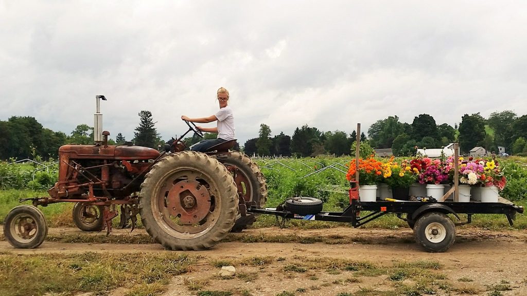 But she especially liked growing vegetables. That’s where she and husband Luke Franco started, with just one acre in Westchester. Flowers were a sideline for them. Farmers markets were the venue for their sales; whatever flowers they brought always sold out and the demand grew. Price resistance seemed non-existent and there was less competition. So the cash crop gradually switched over to exclusively flowers.