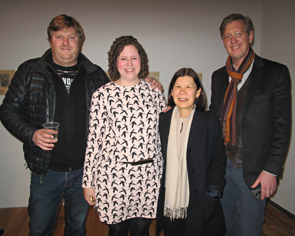Photographer Karl Mattson and artist Marisa LaGuardia; Artist Jena Priebe, whose The Secret Lives of Books is part of the Bibliothecaphilia exhibit, with Winston Rylee and Hannah Pivo, a visual arts intern at the Museum.