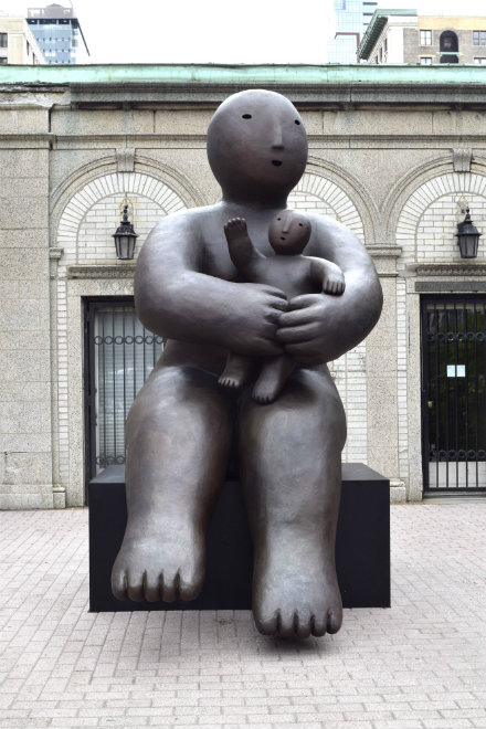 By CB Wismar When you look into the faces of Joy Brown’s larger-than-life, thousand-pound-plus figures, they look back. The eyes are open and alert. The faces are not nervous or self-conscious. “There is no culture, no gender, no age,” says Brown. “They each have a life of their own.” And now nine of them have settled, for a while, on Broadway in New York City, thanks to an invitation courtesy of the Broadway Mall Association and the New York City Parks. The Kent, Conn. artist’s engaging human figures, placed from 72nd Street to 168th Street, are irresistible to passersby who stop, climb, sit on, hug and sometimes simply gaze at these innocent visitors. “The rounded forms and earth tones of these big figures evoke a feeling of stillness and peace,” Brown says, “yet they bring out the child in us to play.” Joy Brown’s own journey has crossed continents, bridged cultures, suffered the deep frustration of having to learn without direction, and culminated in an internationally celebrated career as a potter and a sculptor. Born in the United States, she settled with her medical missionary parents in Japan, went to an international school, came back to graduate from Florida’s Eckerd College and returned to Japan to learn the ways and wiles of pottery.
