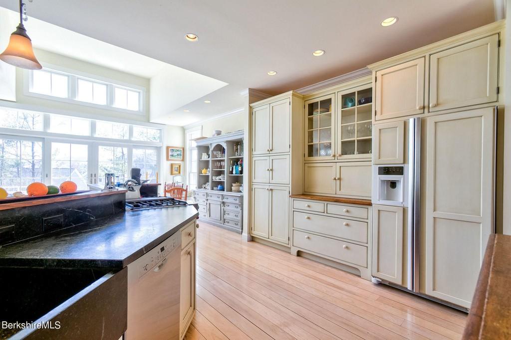 There are five bedrooms and four bathrooms in this 2,883-square-foot home in Great Barrington's Kalliste Hill area. It has an open floor plan, oversized windows, wood floors and other fine finishes. A separate suite above the garage includes an ensuite bedroom and a large space for a studio, den, office or bedroom. The deck offers a mountain view. Listed at $895,000 by Lance Vermeulen Real Estate, Inc.