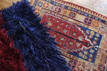“They became reluctant to bring me in,” she said. “I was concerned. I had been working with some of these families for 20 years and there was just no reaching them.” As one might imagine, things didn’t improve after 2001. But the ensuing war without end brought an unexpected change to the industry that still allowed Gomersall to work, and it provided a lifeline to the tribal economies that needed to sell their masterful rugs. “A lot of the guys we were working with fled to New York and became wholesalers,” she said. “I still had access but it was like the bazaar came to me.” Five years ago Gomersall and her partners, who had been coming up to the RI region for years, were convinced by a visiting friend from Italy that they would be fools not to open a store in Hudson. They agreed. The Hudson shop is run by the charming Richard Starna, who has a long history in American folk textiles as well as tribal rugs, and is given a big portion of the credit for the store’s unique esthetic. There’s no counter, computer or cash register visible in the space. There are a couple of small tables, a vase and one chair that's draped with a shaggy carpet. Other than that it’s just rugs, hanging on the wall and folded in neatly stacked piles on the floor. While these are some of the highest-end rugs you will find, there is something gratifying about experiencing these rugs as you might if you were shopping for them in their native land, not just as handsome art but as functional purpose-made furnishings.