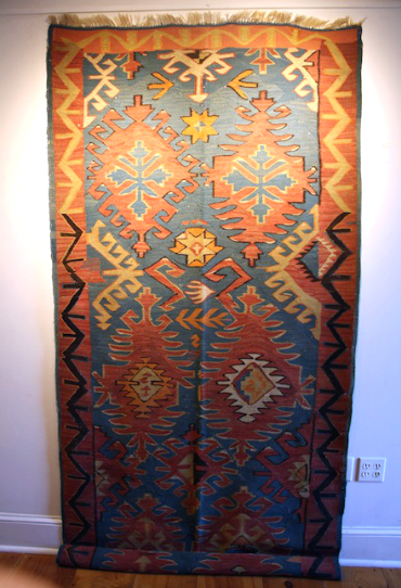 The differences in uses, sizes and designs of rugs from tribe to tribe, and even weaver to weaver, became significant to Gomersall. Over the years, she’s written many papers and a book, Kilim Rugs: Tribal Tales in Wool. “Birth certificates” are kept on most pieces. The journey to bring these stunning rugs to Hudson and the importance of compensating the regional suppliers and artisan means the rugs at Kea are not inexpensive. The lower prices range around $900 while others, like a large 1920's kilim from Dagestan, are $3,500. “At first, the countries I worked in were really stable,” she recalled. “The first upheaval was in Iran, and the Russians invaded Afghanistan. So we had to get our act together. I still traveled to Turkey and Pakistan, and pieces would be brought over the border.” As the region destabilized through the '90s, Gomersall grew uneasy, not just for her business structure but for the communities she had built relationships with.