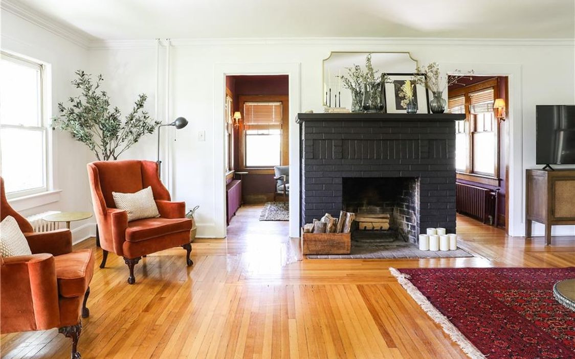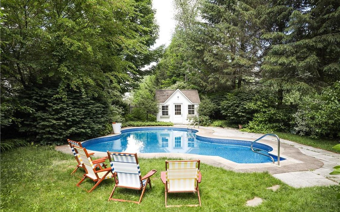 Kees Cottage in Claverack was built in 1910, has three bedrooms and two bathrooms, an open floor plan, and an expansive screened porch overlooking mature gardens, trees, and a raised bed. Additional highlights include the heated pool, a poolside studio, and hot tub. There is the option to purchase it fully furnished. Listed at $695,000 by Houlihan Lawrence.