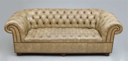 Lot 554: ENGLISH TUFTED LEATHER UPHOLSTERED CHESTERFIELD SOFA Richards' favorite piece in the auction is this sofa, which sat prominently in their Manhattan living room. Hansen designed the space to feel like a box of treasures and one certainly gets that feel from the items in this collection. While not many of the items scream rock and roll, there is a theatrical feel to the offerings. And there's certainly something enjoyable about picturing Richards, with his debauched public persona, lounging on this lush sofa. Estimate: $2,000-$3,000