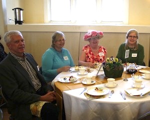 Jamie Larson reports from Kent. The Kent Historical Society’s 19th Century Musicale and Spirited Tea Party on Sunday, April 17 gave today’s high society a taste of the best their cultural predecessors enjoyed in the 1800s. Replicating the time's food, beverage and musical entertainment, the dandy affair featured a presentation on period customs by author and former BBC broadcaster Frank Delaney and a performance by Barbara Hopkins and Judy Handler of the Rosewood Chamber Ensemble, who played era-authentic tunes on antique flute and guitar, respectively. Also on display were historical ladies' garments that were worn on such occasions. The event, held at the Kent Community House, raised funds for the historical society’s ongoing restoration projects. [Above: Leslie Levy, Rudy Molho, Susan Forbes and Rick Levy.]