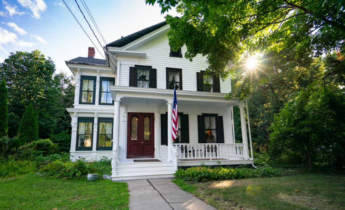 Located in Kinderhook Village, this c.1836 Colonial has retained its original character, with wide-plank floors throughout, a handsome foyer, doble living room with fireplace and large dining room. The upstairs holds four bedrooms, two bathrooms, a balcony and an office. A three-seaon room looking out to the private backyard was added in 1986. A large barn holds storage or workshop needs. Listed at $489,7000 by Berkshire Hathaway HomeServices/Blake Realtors.